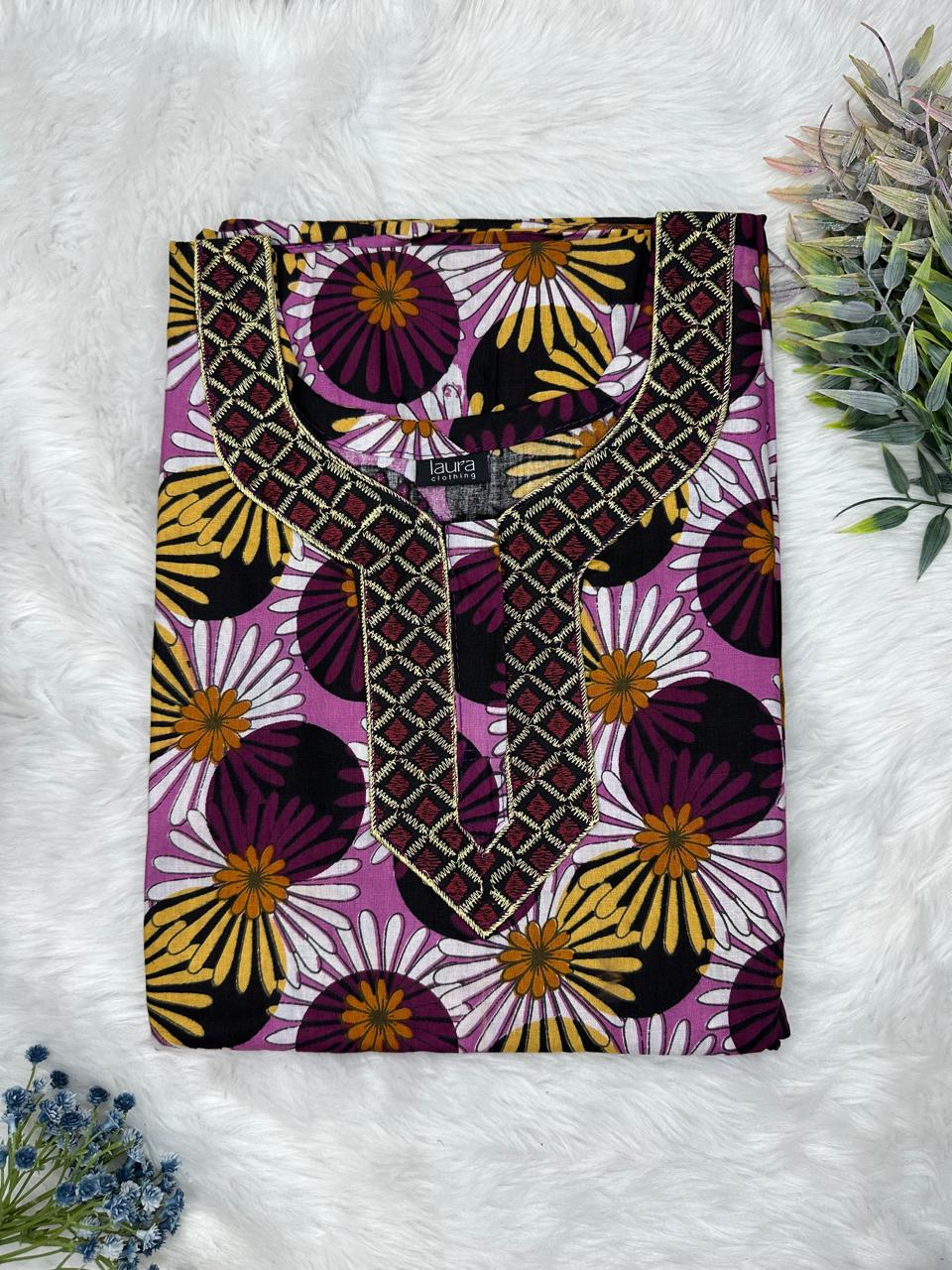 Twilight Lavender Printed Normal Zip Embroidery Neck Pure Cotton Maternity Nighty Plus Size Short Sleeve (Suits for bra size 40″- 46″ | 54-56 inch length)