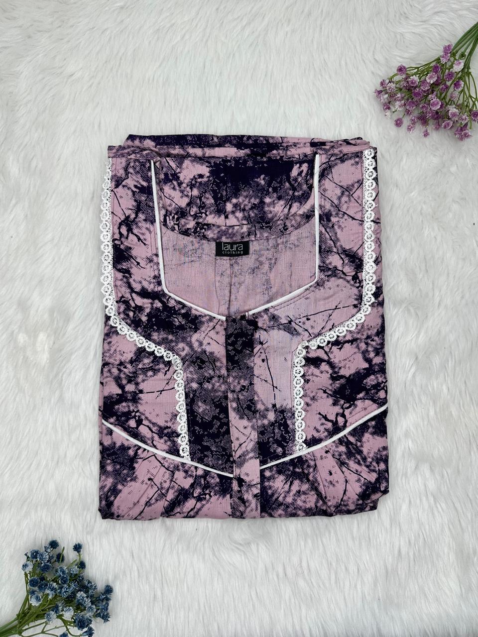 Cinereous Printed Square Neck Centre Long 12" Zip Pure Cotton Feeding Nighty Free Size Short Sleeve (Suits for bra size 34″- 40″ | 54-56 inch length)