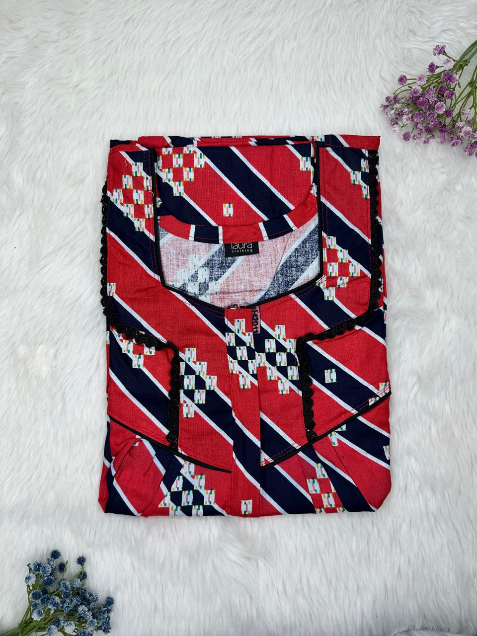 Upsdell Red and Onyx Printed Square Neck Centre Long 12" Zip Pure Cotton Feeding Nighty Free Size Short Sleeve (Suits for bra size 34″- 40″ | 54-56 inch length)