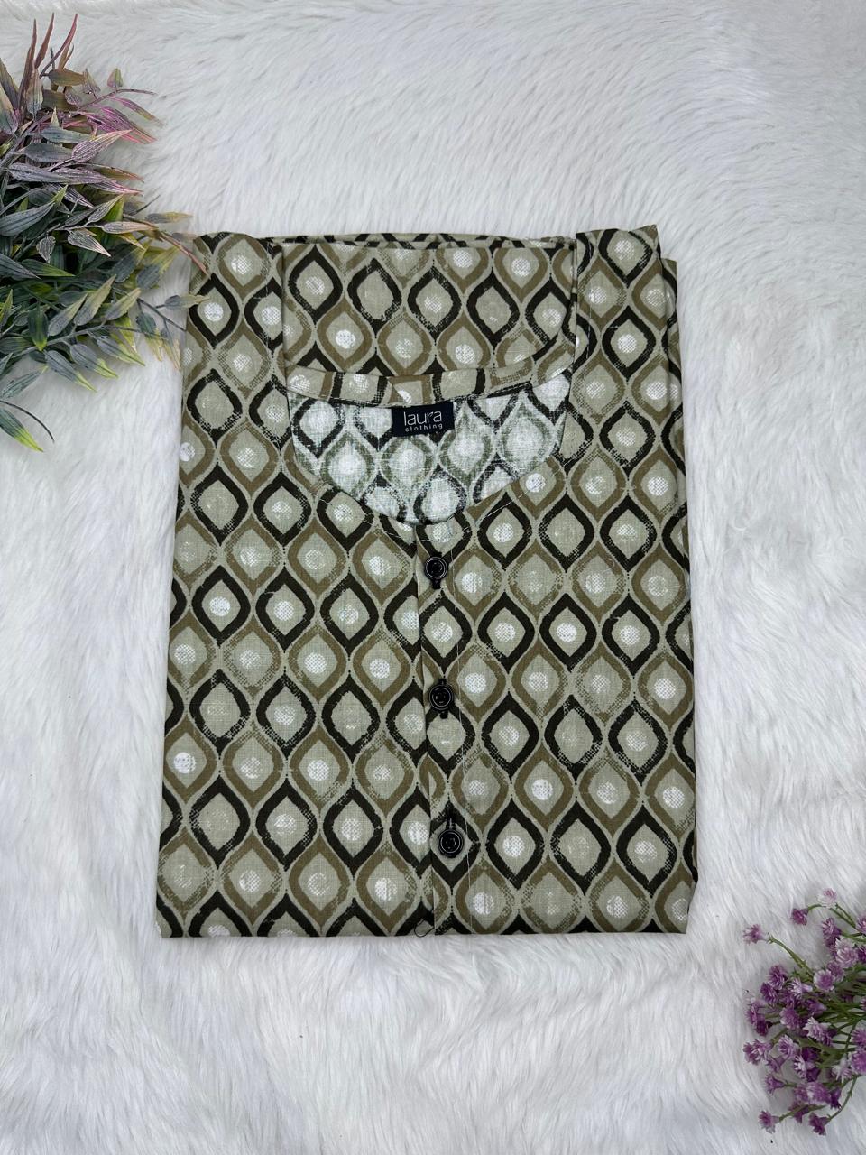 Grullo Printed Round Neck Pure Cotton Full Open Button Labour Room Nighty Free Size Short Sleeve (Suits for bra size 34″- 40″ | 54-56 inch length)