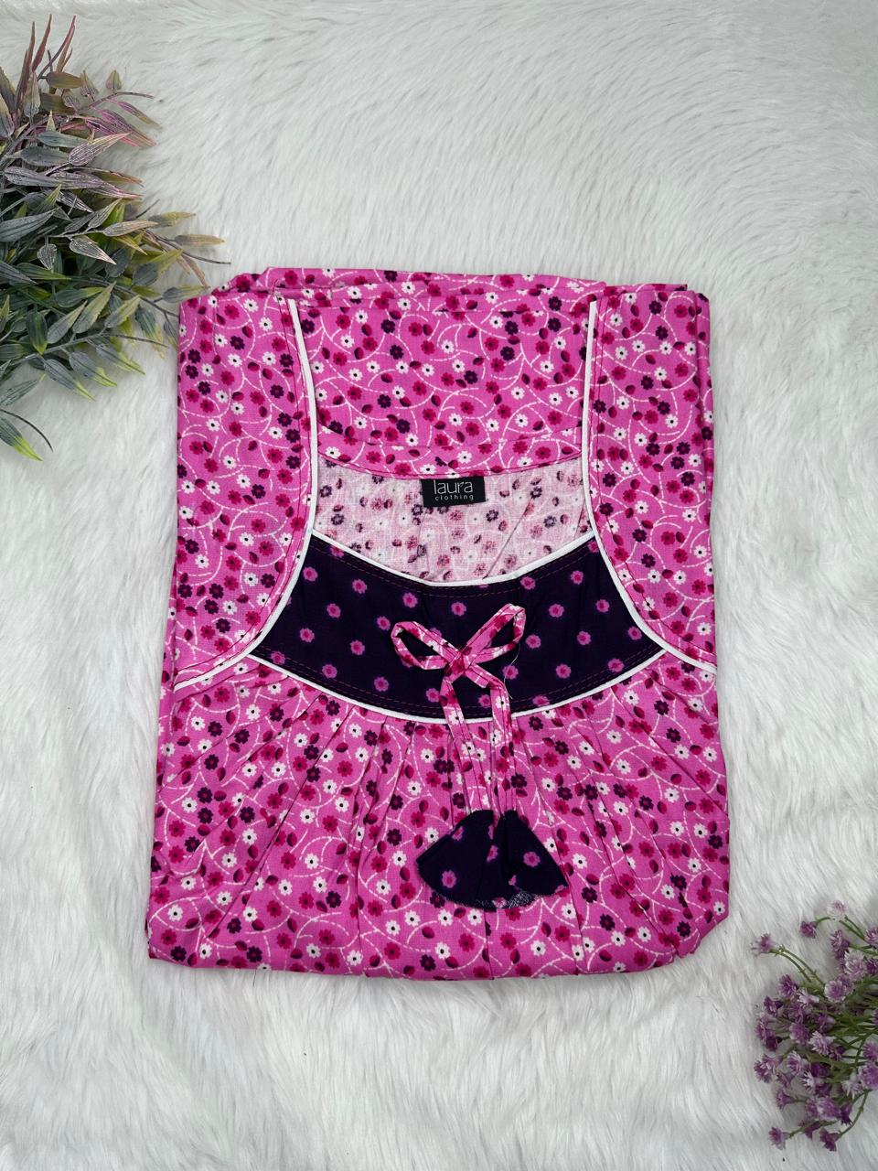 Mulberry Printed Square Neck No Zip Pleated Pure Cotton Nighty Free Size Short Sleeve (Suits for bra size 34″- 40″ | 54-56 inch length)