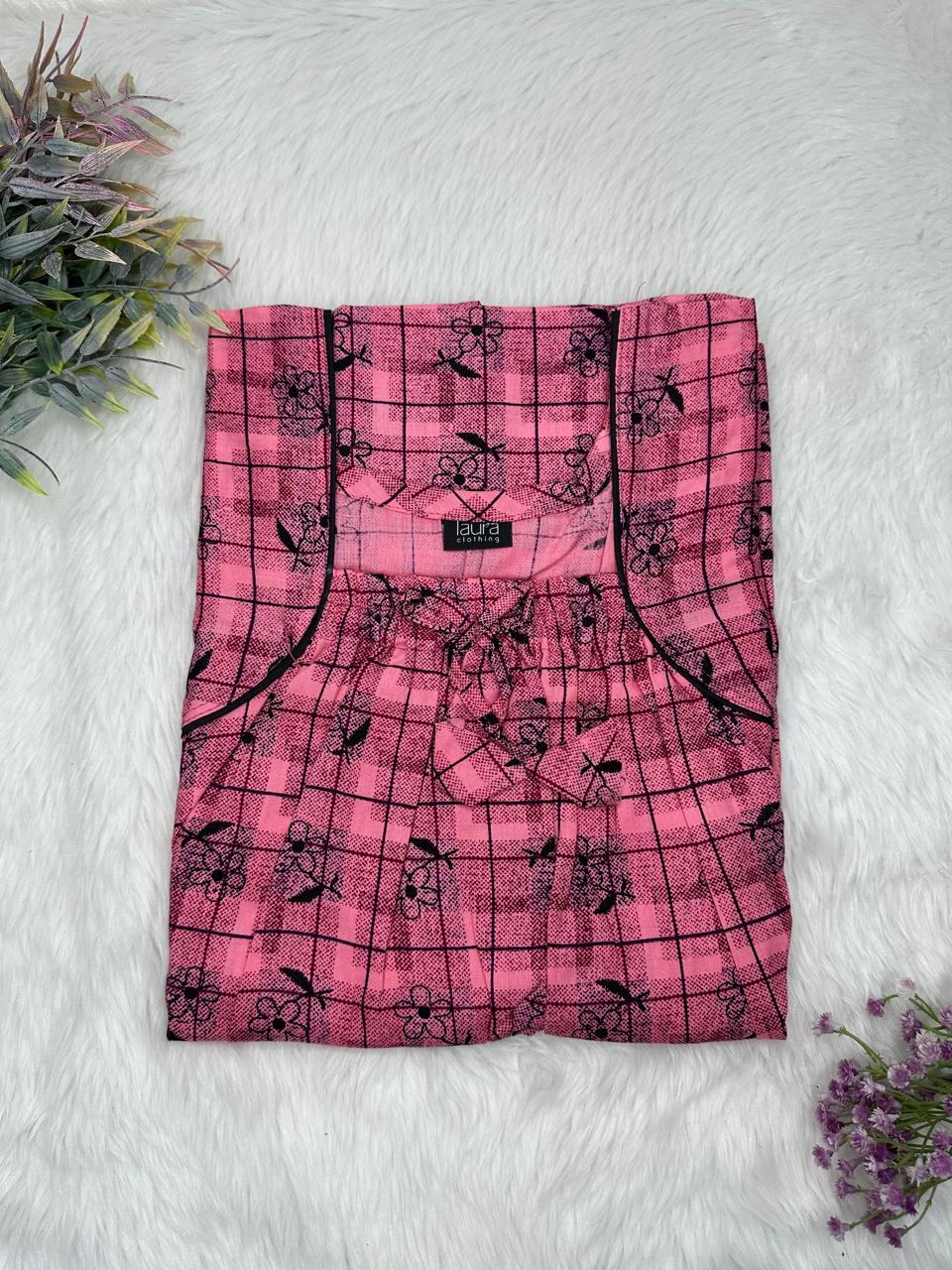 Light Crimson Printed Cotton Square Neck Elastic Pleated Nighty Free Size Short Sleeve (Suits for bra size 34″- 40″ | 54-56 inch length)