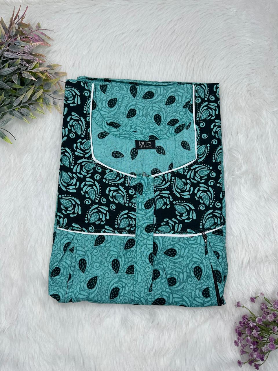 Skobeloff and Onyx Printed Square Neck Pleated Pure Cotton Feeding Nighty With Two Side Vertical Zip and Single Centre Zip Free Size Short Sleeve (Suits for bra size 34″- 40″ | 54-56 inch length)